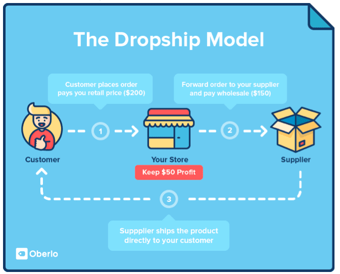 Rather than you buying inventory, stocking it, then packaging and shipping it out every time an order comes in, dropshipping allows you to sell products that are housed by your manufacturer or a wholesaler. They store it until you sell it. And you don’t pay a dime until you sell it.