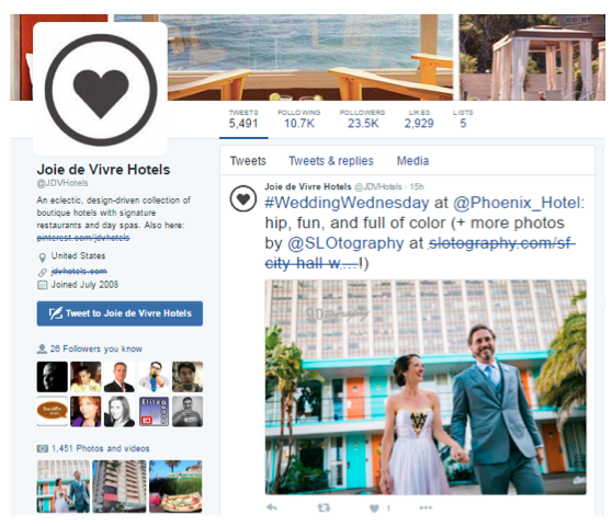 Joie De Vivre is a luxury hotel chain in California. They decided to focus on using Twitter as a means to drive sales by offering deep discount offers with extreme time limits. The result was getting reservations for more than 1000 rooms in less than a year.