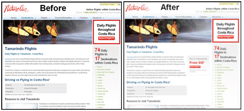 In one case, Nature Air A/B tested two landing pages. Both were identical except one page had a more prominent call to action box. Testing showed that this small change earned them 591% more conversions. So, what makes changes like this so effective? Behavioral economics is the use of psychology and emotion to influence the behavior of users regarding financial decisions. In this case, creating a larger call to action box provided psychological incentive for more people to convert. In this case, the technique employed was anchoring. Here are a few other examples of behavioral economics: