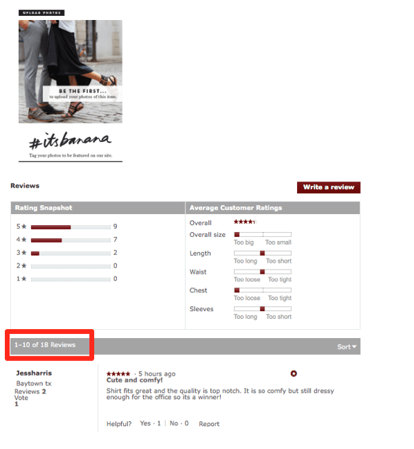 Here’s an example from Bananarepublic, they surely know how to use product reviews to get more sales: