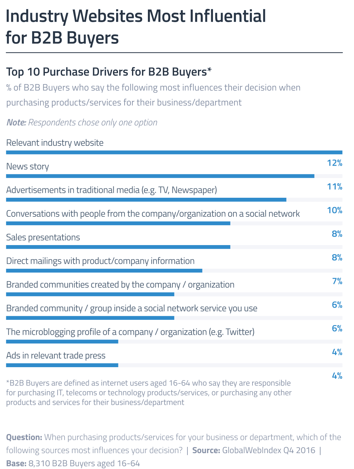 - Source: WebIndex Industry websites most influential to B2B Buyers