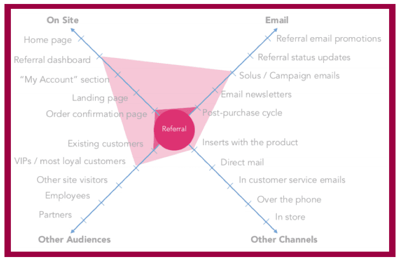 Every business now connects with customers within an expansive landscape of touch points. In order to figure out the best ways to present your referral offer, there are a number of formats to consider. The below visualisation provides food for thought.