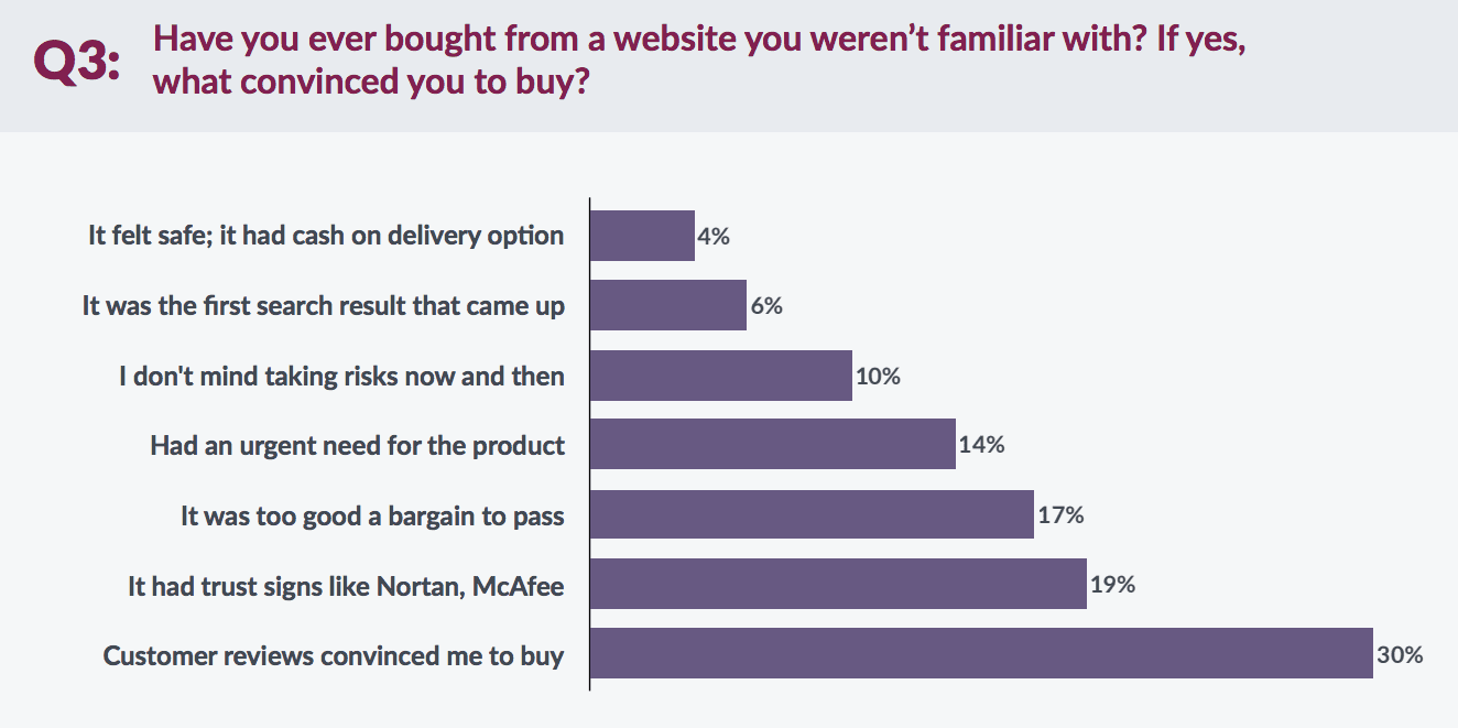 84% of customers trust product reviews from other users as much as they trust recommendations from friends. And 55% of customers say online reviews influence their purchase decisions. A recent report from VWO, moreover, found that customer reviews are the top driver of customer trust when someone is unfamiliar with a shop.