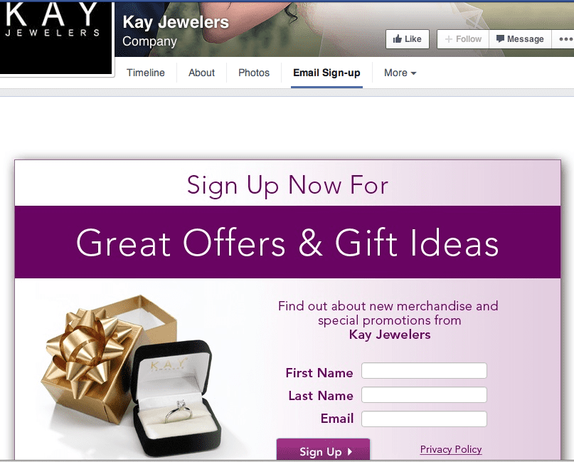 It is impossible to sign up for brand newsletters without having to visit the brand’s website unless Facebook cares about corporate customers offering such an opportunity through the customizable tabs of the brand pages. Both the brand fans and random visitors can sign up for the newsletters using an opt-in tab embedded in brand pages.