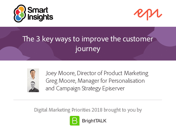 Smart Insights are holding their fourth digital marketing Summit on the 12th December, where they will explore the key digital trends for 2018. Join Joey Moore, Director of Product Marketing and Greg Moore, Manager for Personalisation and Campaign Strategy of Episerver for a practical webinar on The 3 key ways to improve the customer journey.
