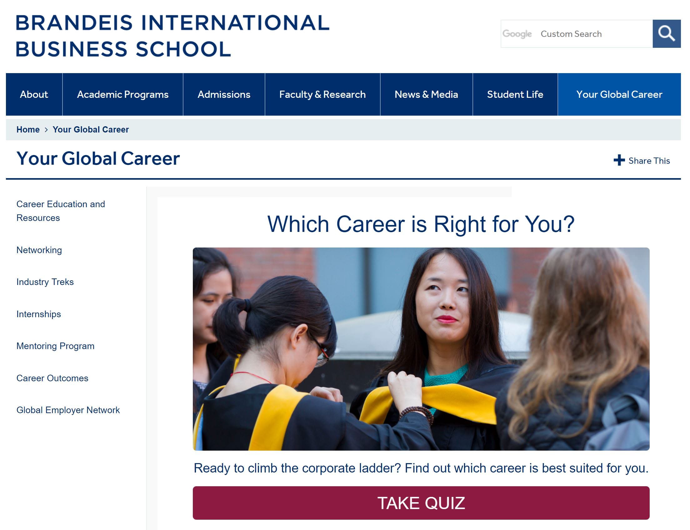 A good example of personalization is the quiz Brandeis University published to help students with the choice of their career “Which Career is Right for You”. Based on their responses, students get a suggestion for their future career opportunities and they are redirected to the most appropriate educational offerings. By helping respondents with their choice, the university manages to acquire an impressive 125 students per month.