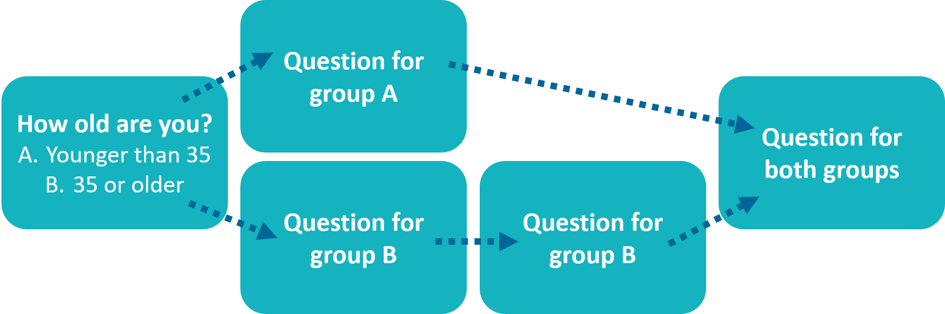 Skip logic ensures that the respondent only gets relevant questions. Depending on the answer that you give, you are directed to different questions. Making the quiz both shorter, more efficient and more personalized.
