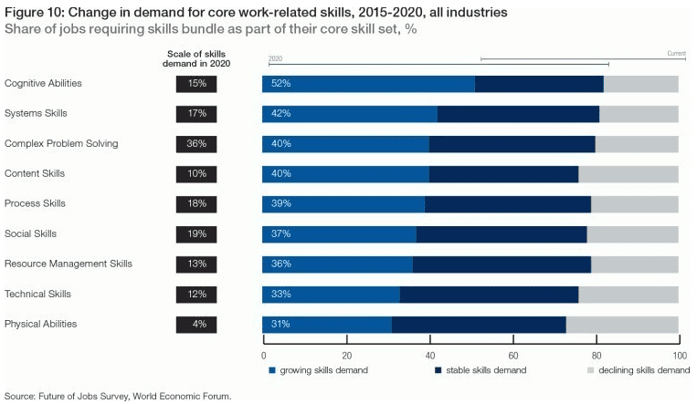 More broadly, demand for skills like complex problem solving, social skills and content skills are expected to grow considerably over the next few years