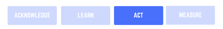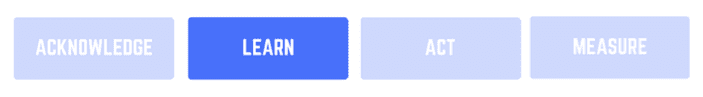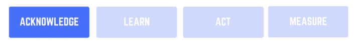 Let’s try an ACKNOWLEDGE – LEARN – ACT – MEASURE approach here.