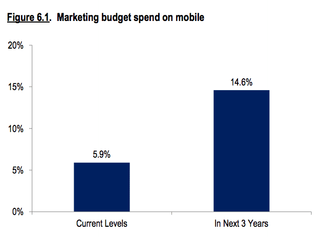We’ve seen a seismic shift to mobile over the past few years, with mobile now accounting for over half of all time spent on the web. US CMO’s report that they will more than double mobile budgets over the next 3 years. Shifting from just under 6% of current marketing spend to 14.6%. This makes sense as it’s following where users actually spend their time, but given that in 3 years time over 65% of time spent on the web may be on mobile devices, it may make sense to increase mobile budgets even more rapidly.