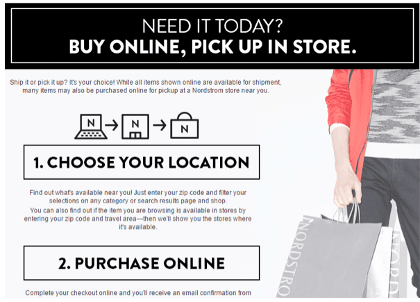 Department store Nordstrom allows customers to buy online with the option to pick up in store and provides style videos with helpful tips.