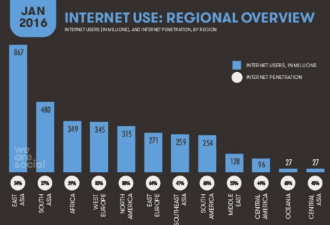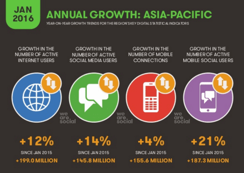 Asia-Pacific is driving much of this growth, which internet usage rates high and number of active social media users increasing 14% on the year before.