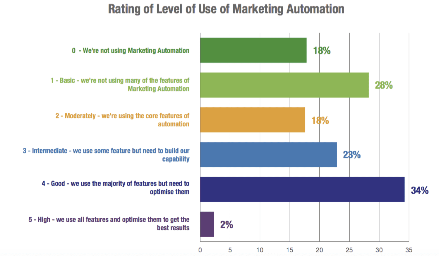 Marketing automation is the perfect technology for B2B marketing. It provides an automated way of scoring and nurturing leads with relevant content along the journey to purchase. Yet our research on Marketing Automation (free download) shows that many businesses aren’t fully exploiting marketing automation since they are at an early level of maturity.