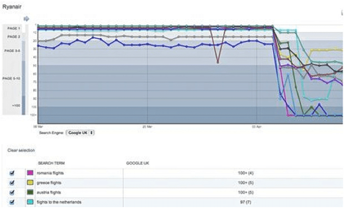 Ryanair is one of the many high-profile organisations who forget this basic rule of SEO. When they launched their new website in 2014 they didn’t redirect their URLs correctly. This resulted in a drop in keyword rankings for many of their prized keywords.