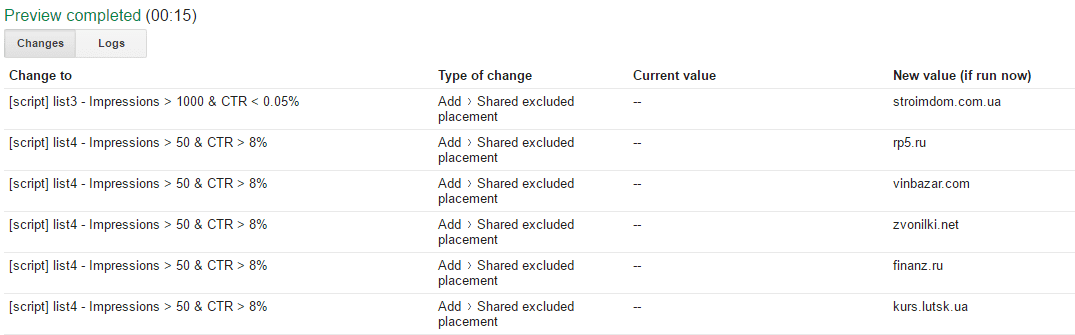 If you want to learn more about how to use scripts to create remarketing audiences, check out this article. Pay attention to details, i.e. remember to specify all the parameters, don’t rename the fields in the spreadsheet, and check the spelling of the domains you wish to exclude.