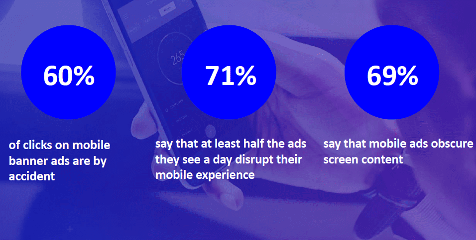 Customers aren’t happy with the ads they’re seeing either. Most complain they obscure the content, and 71% say the majority of ads they see are disrupting their experience. Of course, all ads disrupt consumers to some extent, but on the small screen of mobile devices, it’s hard to create an effective ad which isn’t just annoying customers by getting in the way.