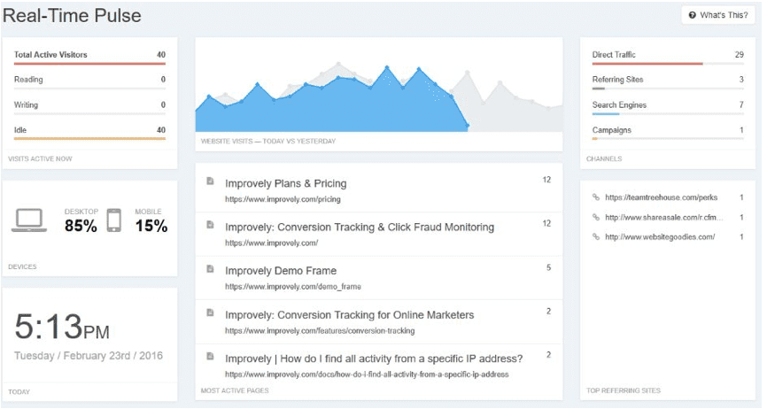 Analyzing both where traffic is landing and spending the bulk of their time, coupled with the sources where they’re coming from in the first place, w3Counter paints a picture at a glance of which pages are pulling in the most leads.