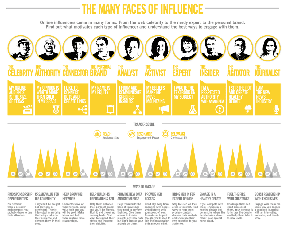 Identify who these opinion formers are and think about how they can help you. Segmenting influencers as in this example from Traackr can help you think about Level B and C influencers who are not the celebrities or authorities that many brands will court, but collectively will have an influence.