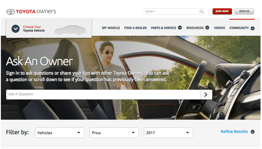 Consumer marketers can use their customers as social proof. Toyota are a good example of a company who use their customers as social proof. Their website includes a forum where you can connect with Toyota owners and ask them any questions about their car.