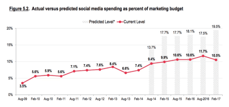 Social Media spend has always fallen well below predictions