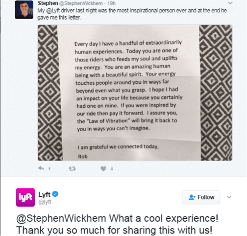 A good example is Lyft app who are taking their social media game to another level.