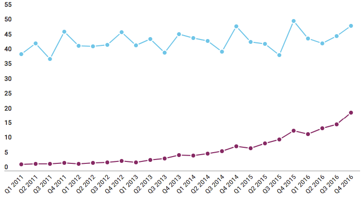 Chart of the Day: Facebook’s revenue per user increase 10 fold in 5 years