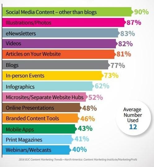 Source. Types of content used by marketers last year showing the dominance of visuals
